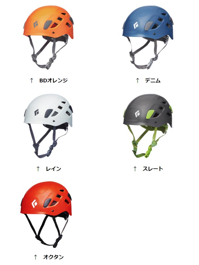 ・ポリカーボネートシェルとEPSフォームを一体成型・すっきりしたサスペンションシステム・軽量なヘッドランプクリップ・片手で操作できる調整ダイヤル・長さ調節しやすいチンストラップ 重量:S/M=330g、M/L=350gサイズ:S/M=50-58cm、M/L=56-63cm↑ BDオレンジ↑ デニム↑ レイン↑ スレート